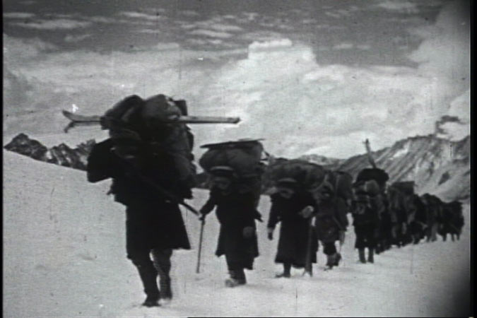 Der Film (eine gespiegelte Doppelprojektion) der bei der Ankunft der